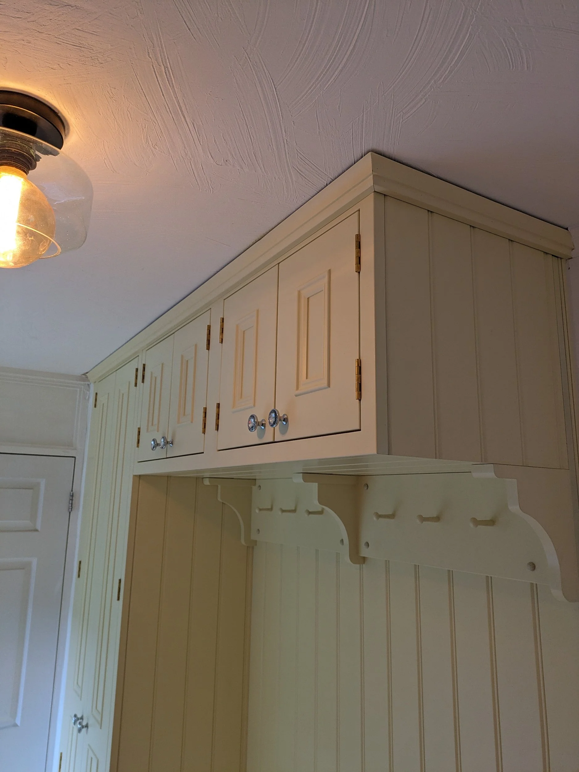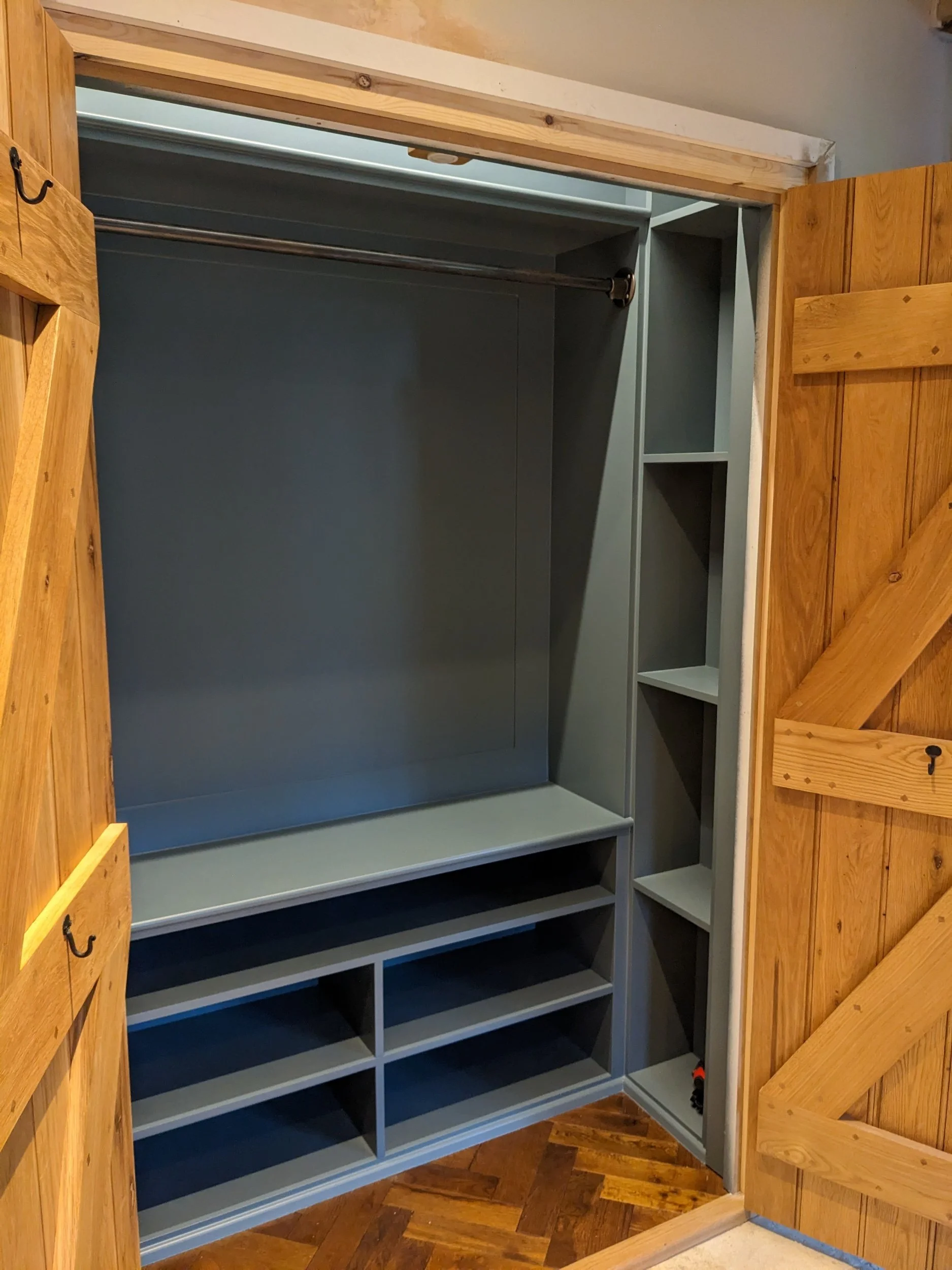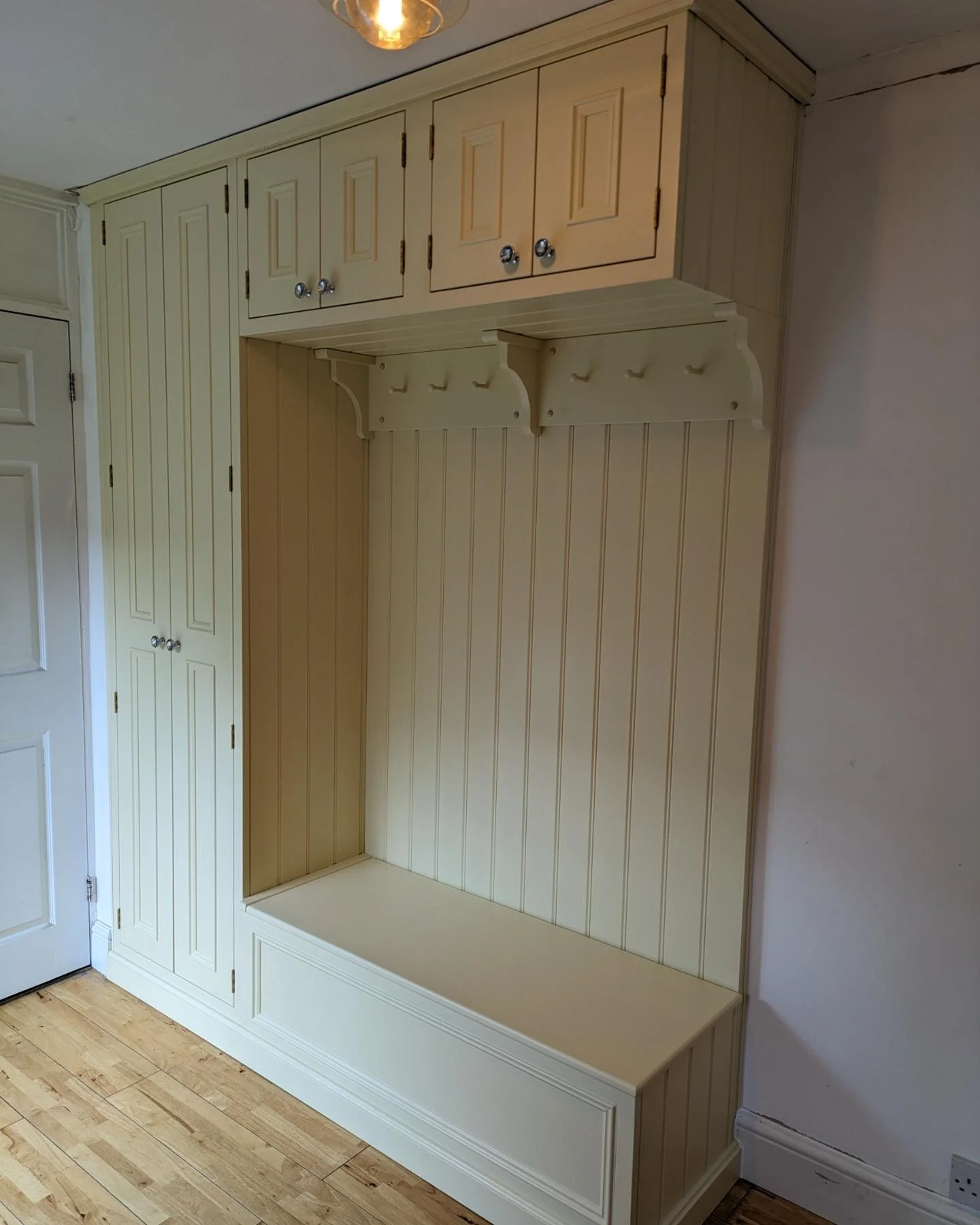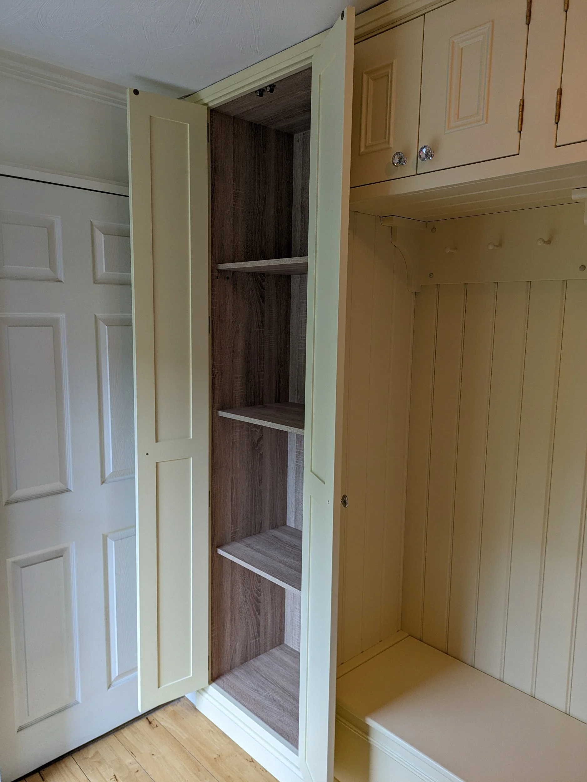Boot room cabinet with mfc internals and sprayed exterior with shaker doors. Hand made by myself.