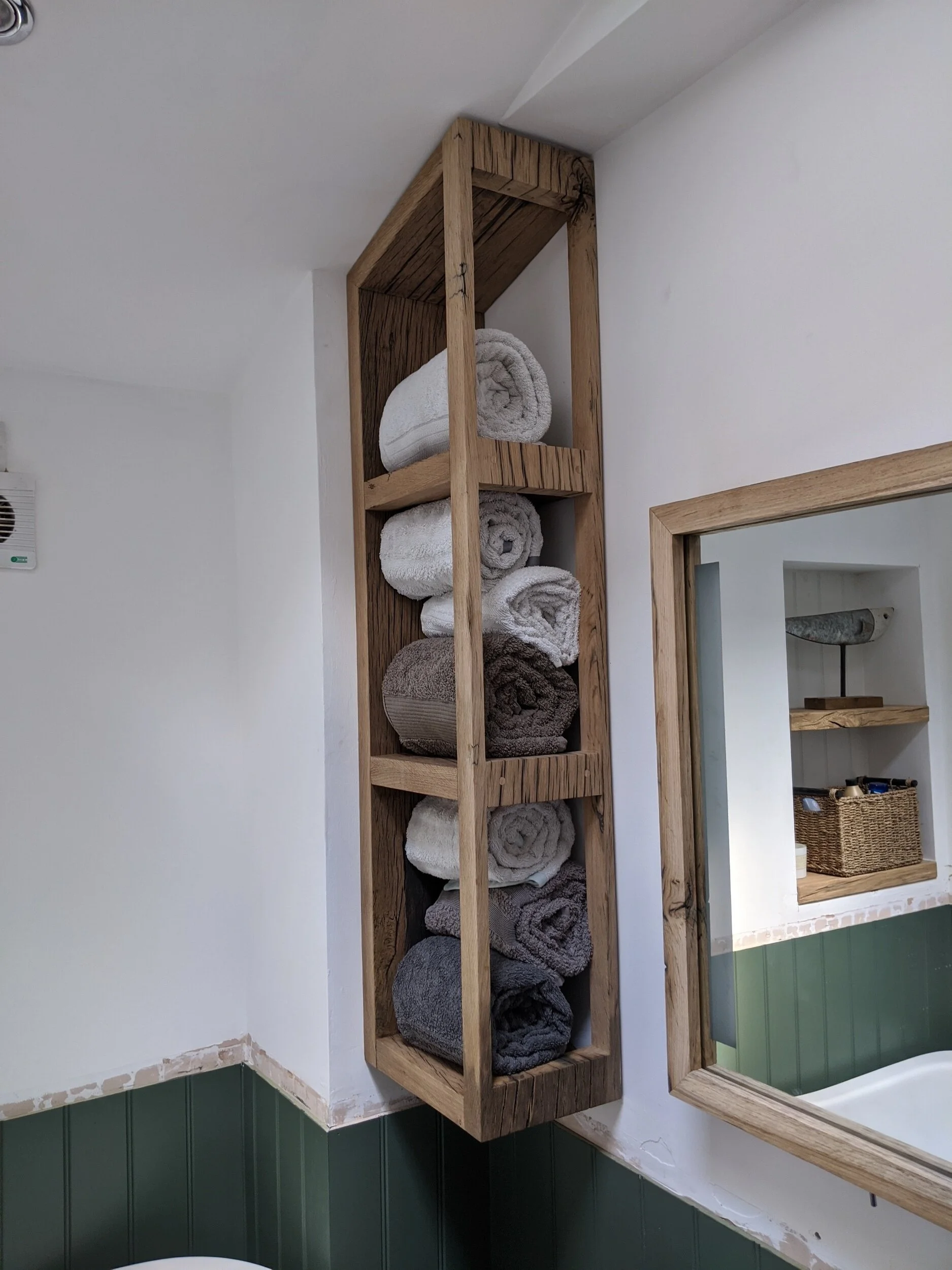 Bespoke oak towel shelving unit Here is a bespoke towel shelf made from reclaimed French oak . Ben CordellJuly 26, 2020 Facebook0 Twitter Reddit Tumblr Pinterest0 0 Likes