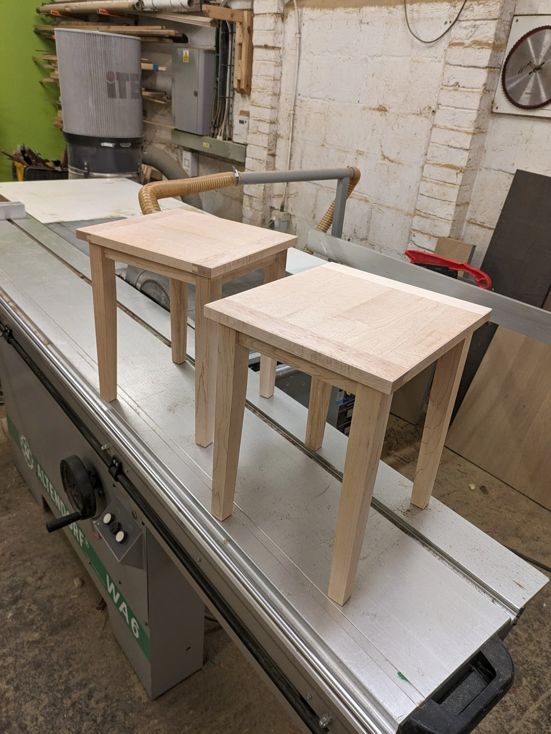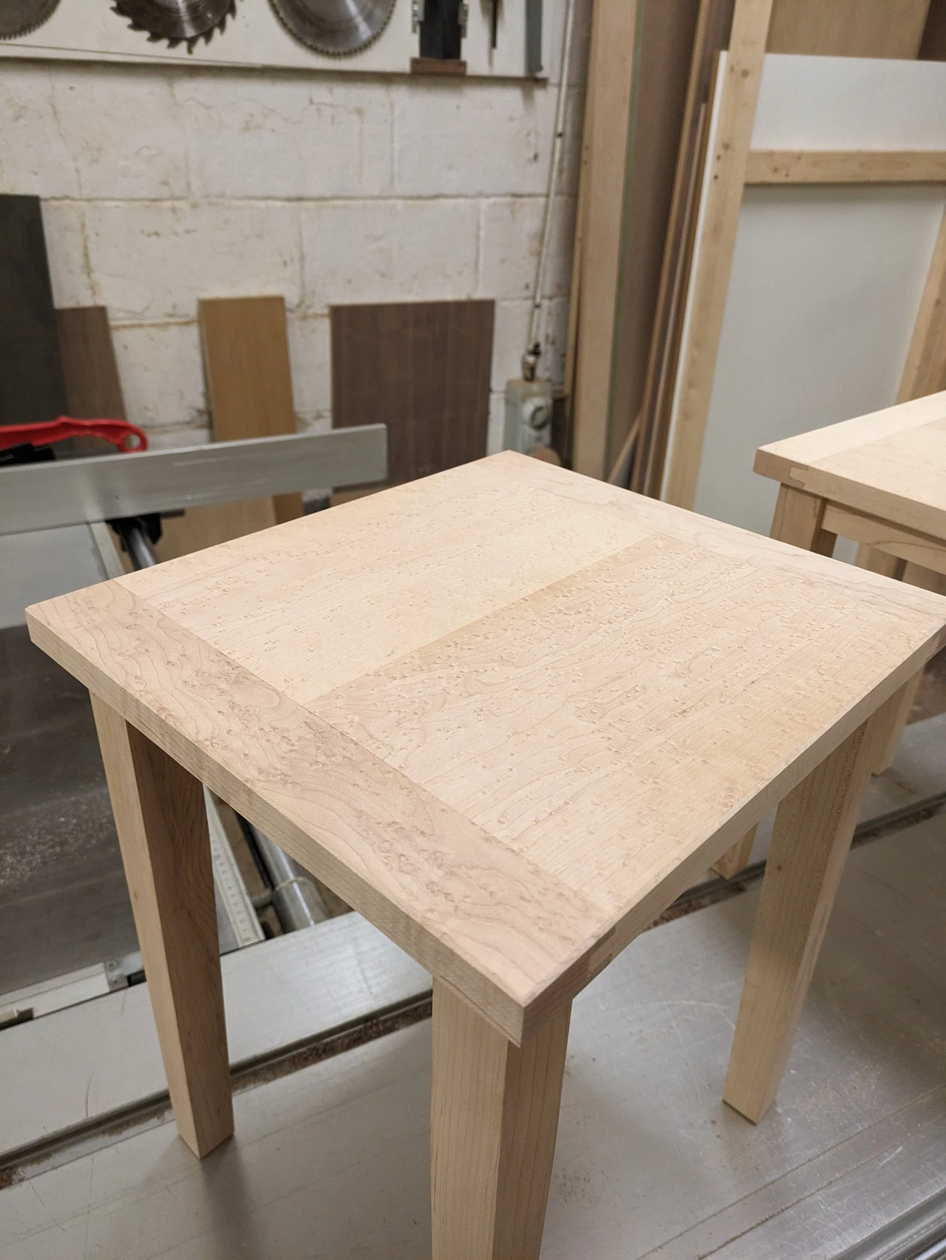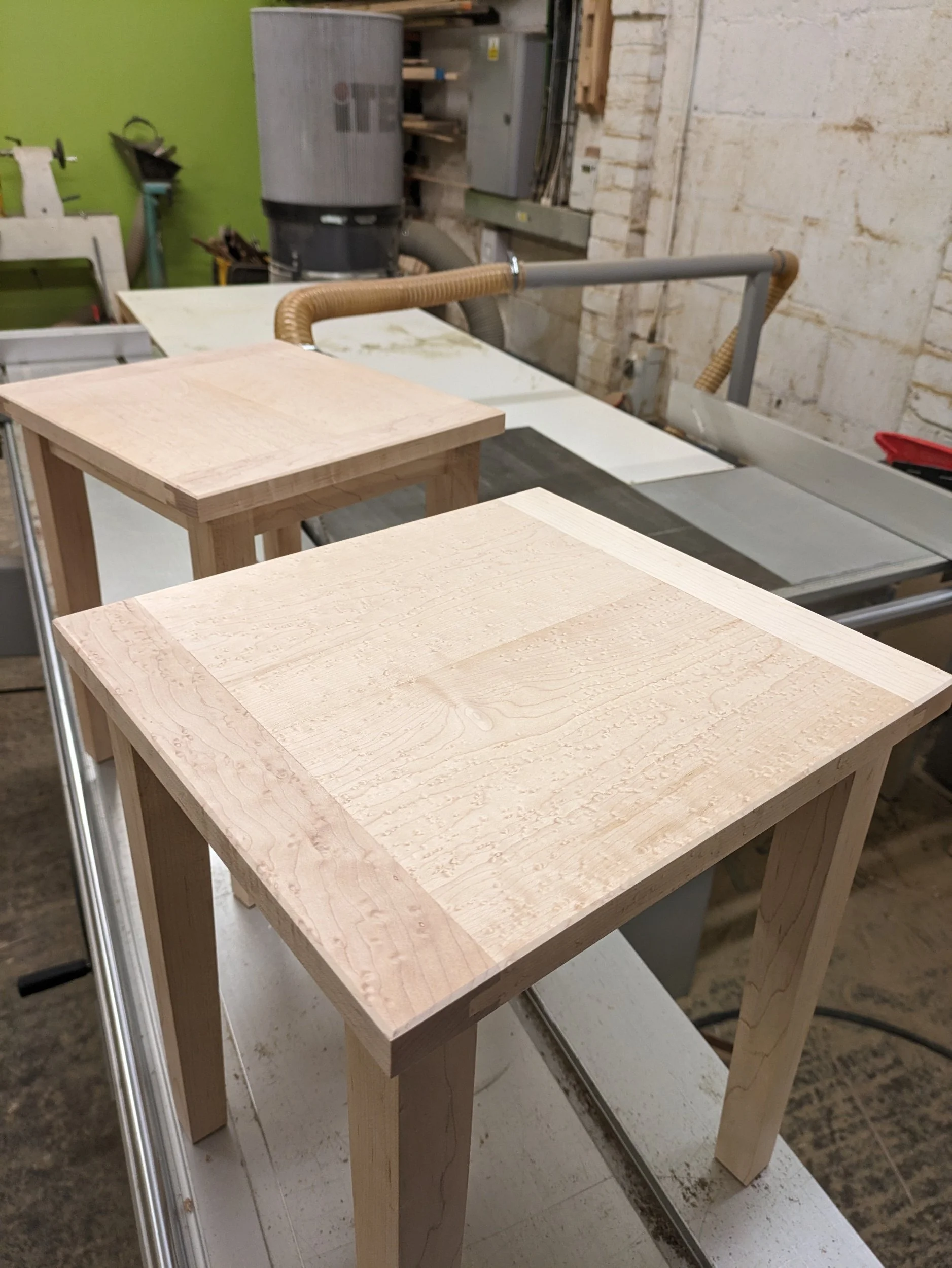 Birds eye maple side tables