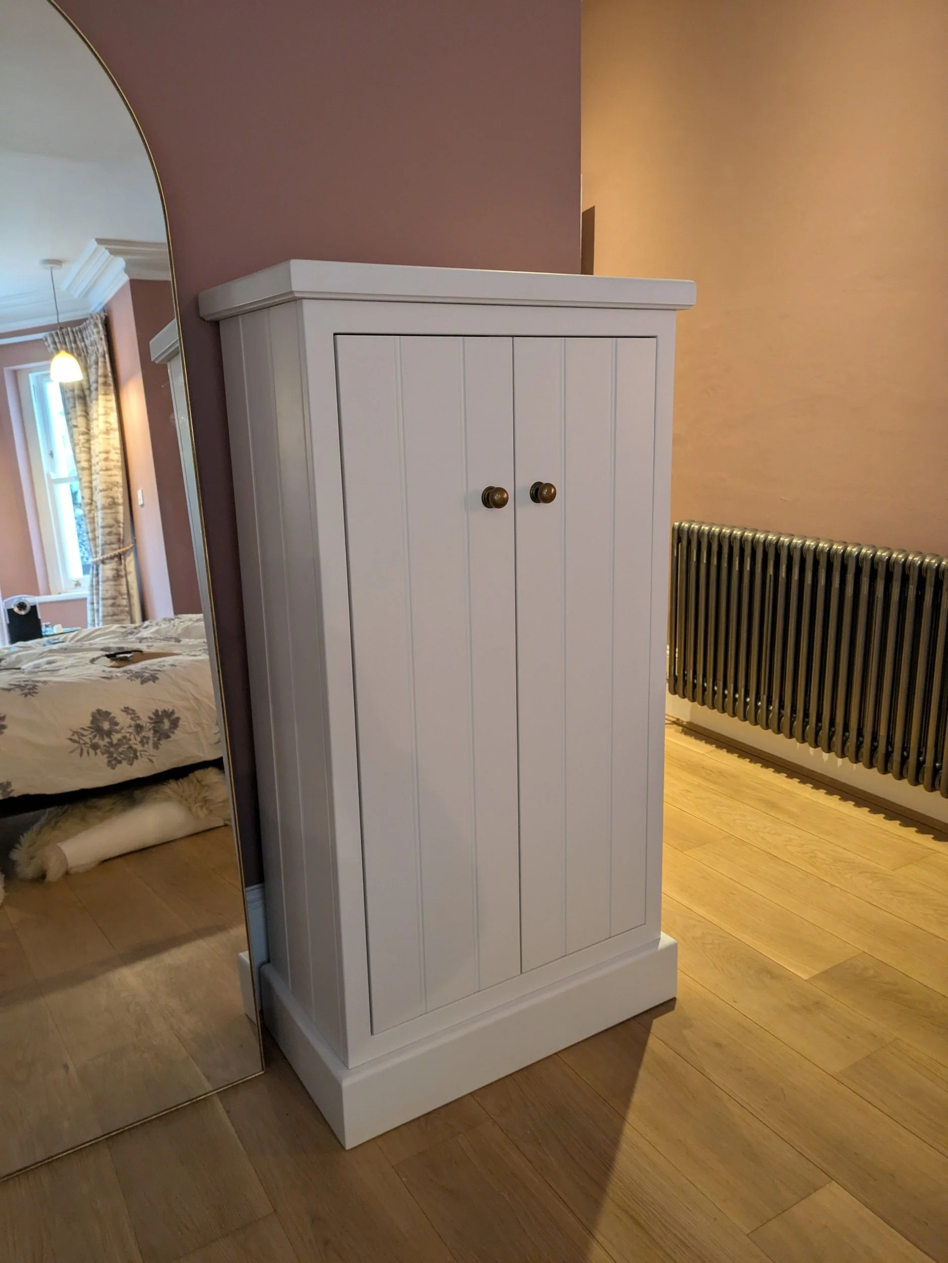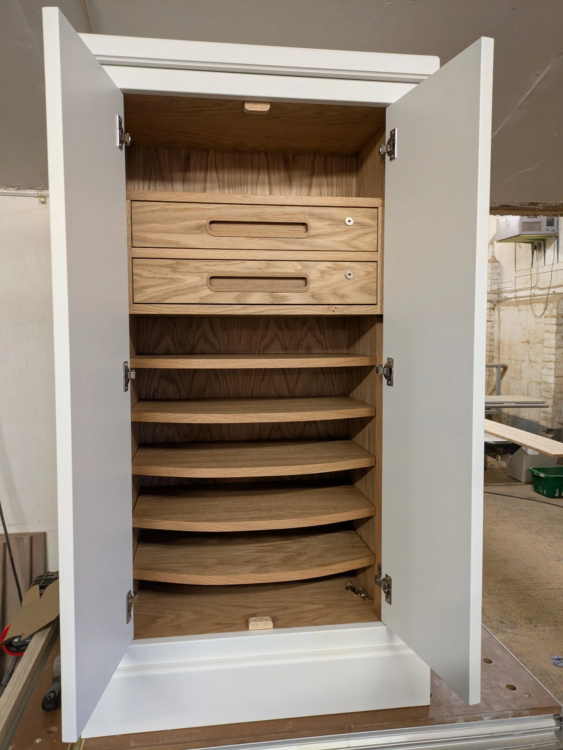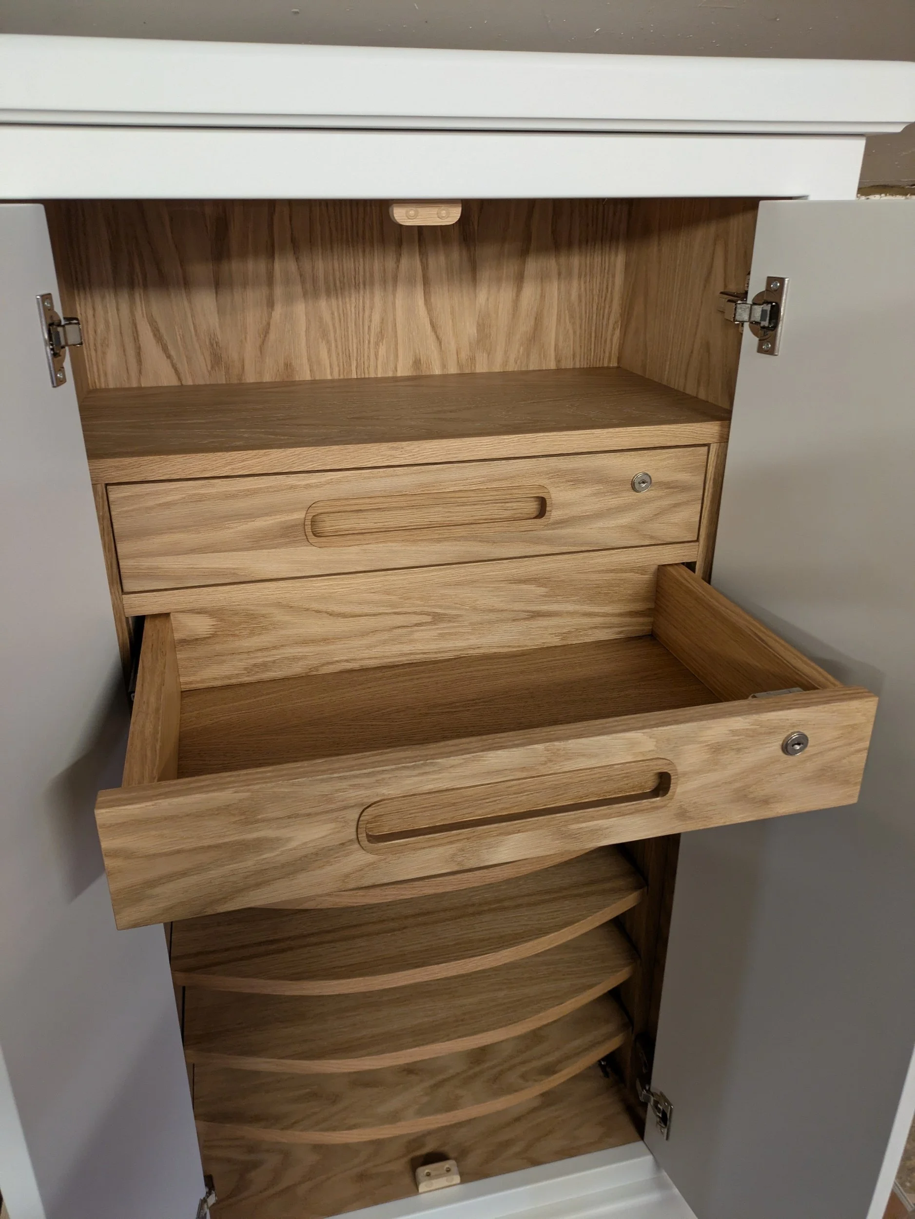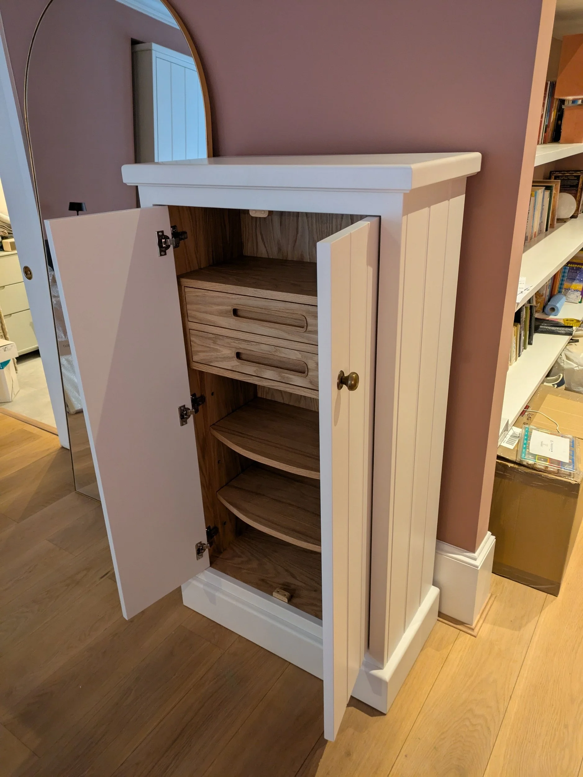 Tallboy cabinet Tallboy cabinet with oak interior with locking drawers. Painted exterior with bead and butt detail Ben CordellMarch 22, 2025 Facebook0 Twitter Reddit Tumblr 0 Likes